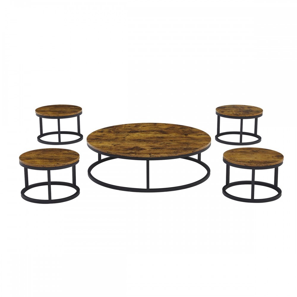 محتويات الطقم: يتكون من 5 قطع متناغمة (طاولة رئيسية دائرية+ 4 طاولات خدمة أرضية صغيرة).