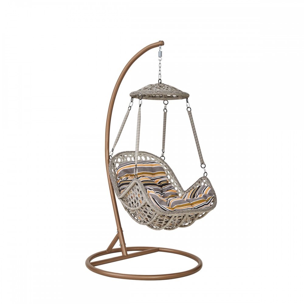 ارتقِ بمستوى الاسترخاء في منزلك مع كرسي المرجيحة المعلق المنسوج، المصمم خصيصاً لمن يبحث عن الفخامة والراحة في آن واحد. يتميز هذا الكرسي بهيكله المفتوح الذي يسمح بمرور النسيم ومظلته العلوية التي تضفي لمسة من الخصوصية والجمال، مما يجعله القطعة المركزية المثالية لأي مساحة خارجية أو داخلية.