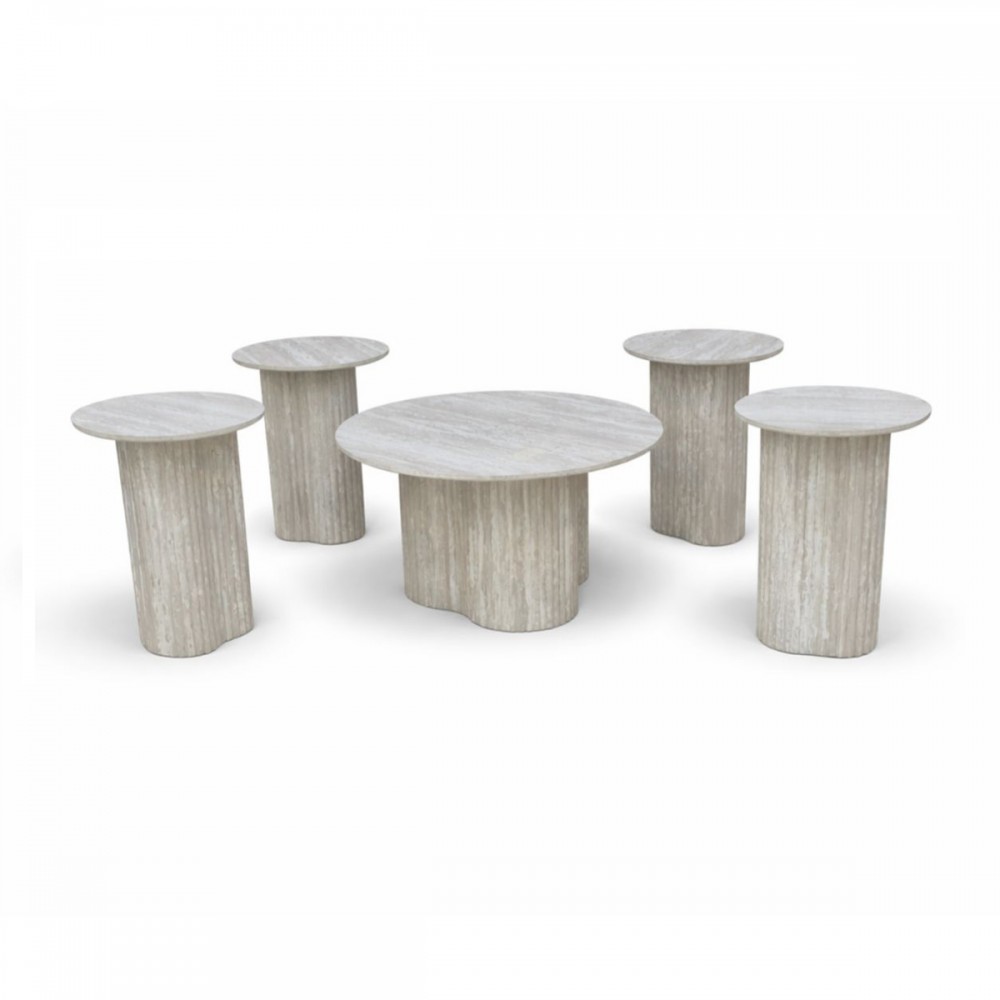 طقم طاولات مجلس "ترافرتين وود" الدائري - تناغم الأشكال العضوية والفخامة العصرية