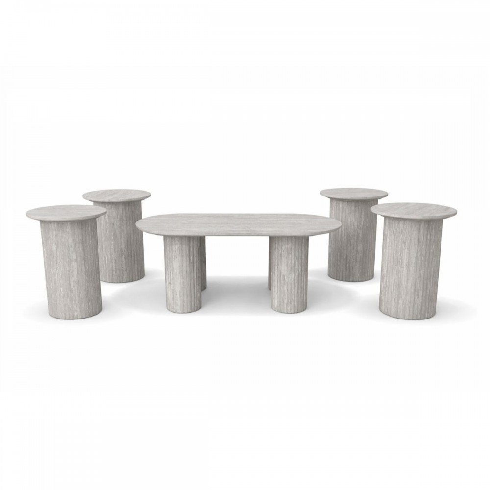 طقم طاولات مجلس "ترافرتين سكاى" البيضاوي (5 قطع) - انسيابية اللون الرمادي العصري