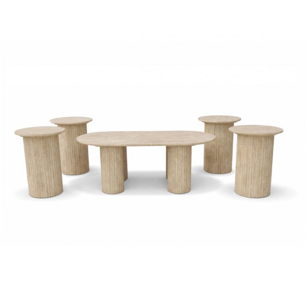 طقم طاولات مجلس "ترافرتين ساند" (Travertine Sand) - امتداد الفخامة باللون البيج الموحد