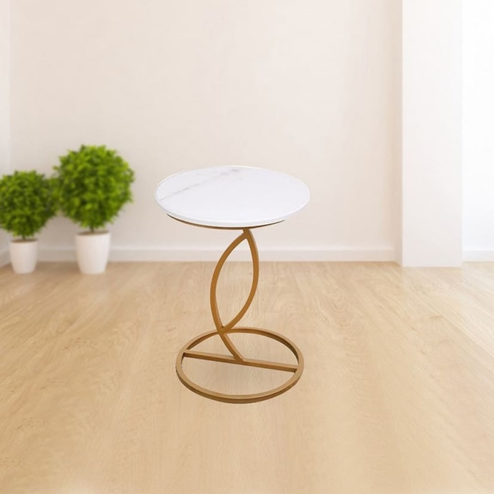 طاولة جانبية 50×50 سم - ذهبي وأبيض