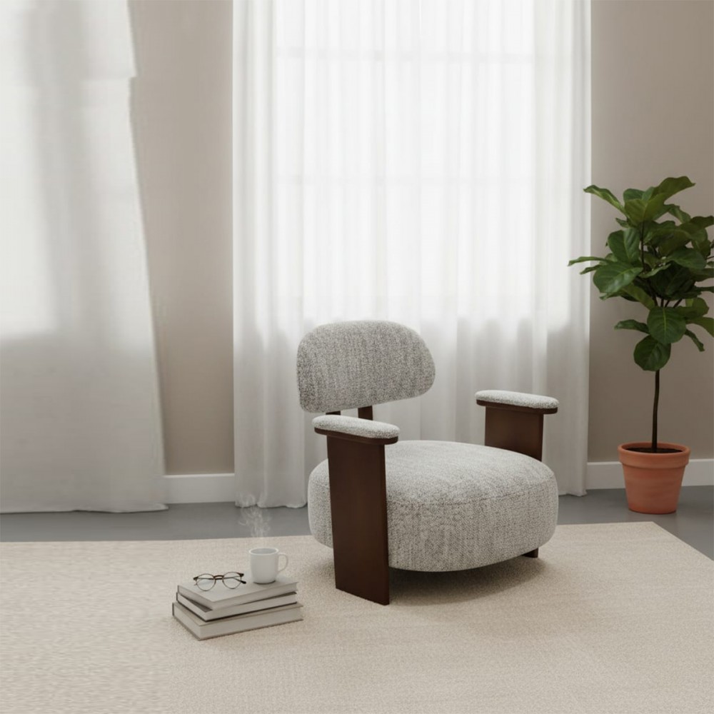كرسي رمادي فاتح "مودرن ريلاكس" - أناقة الخشب وراحة القماش