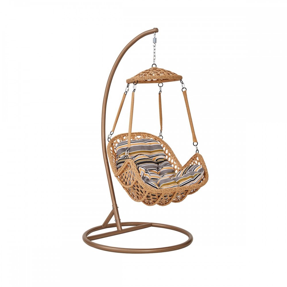 ارتقِ بمستوى الاسترخاء في منزلك مع كرسي المرجيحة المعلق المنسوج، المصمم خصيصاً لمن يبحث عن الفخامة والراحة في آن واحد. يتميز هذا الكرسي بهيكله المفتوح الذي يسمح بمرور النسيم ومظلته العلوية التي تضفي لمسة من الخصوصية والجمال، مما يجعله القطعة المركزية المثالية لأي مساحة خارجية أو داخلية.