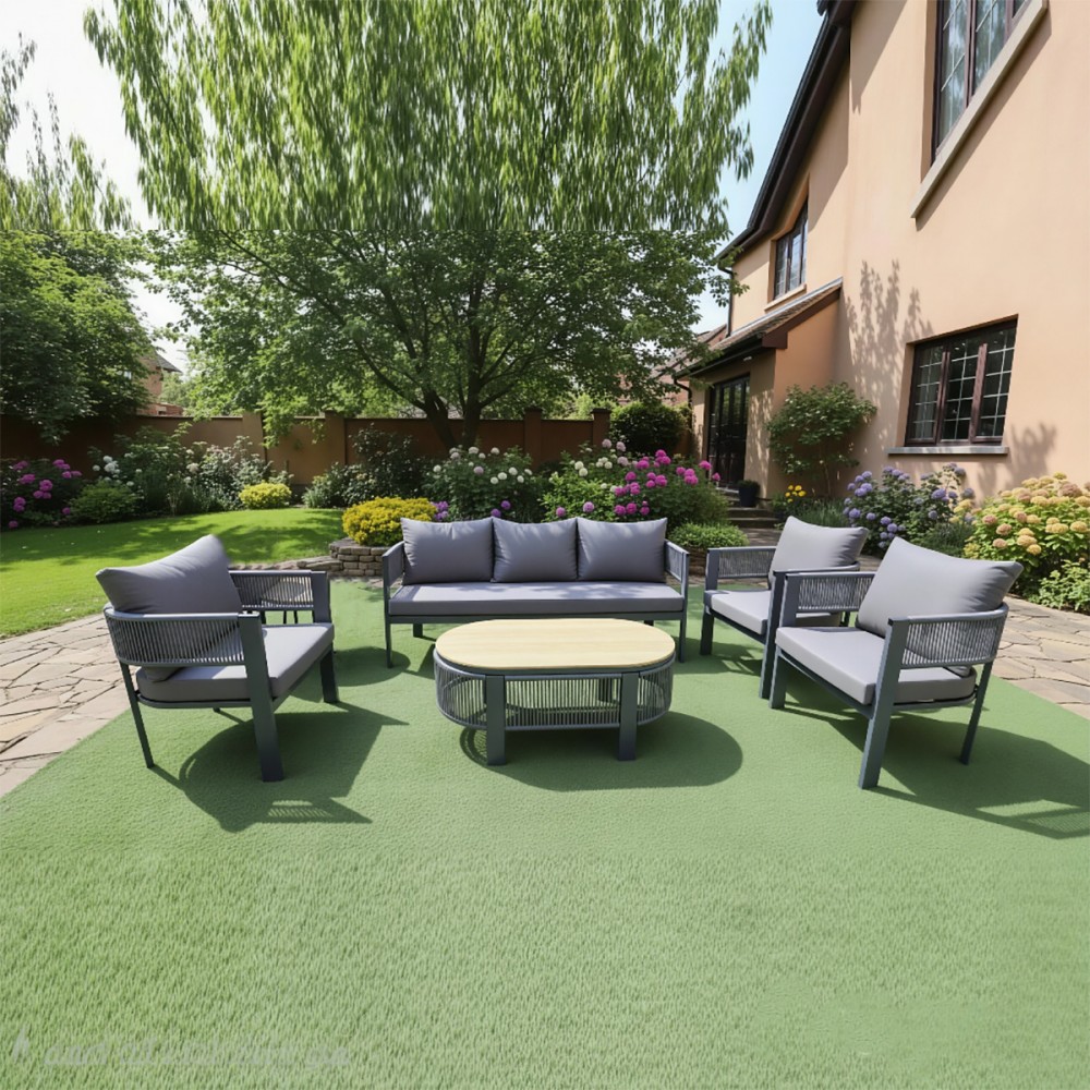 طقم جلسة حدائق "أورا" (Aura) مودرن - فخامة الرمادي وتصميم الحبال المجدولة