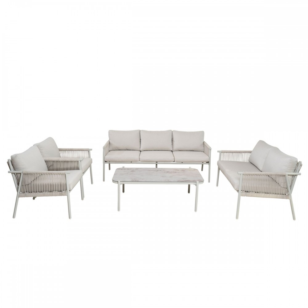 طقم جلسة "آيس جراي" (Ice Grey) المودرن - فخامة اللون الرمادي الفاتح وتصميم الحبال الانسيابي